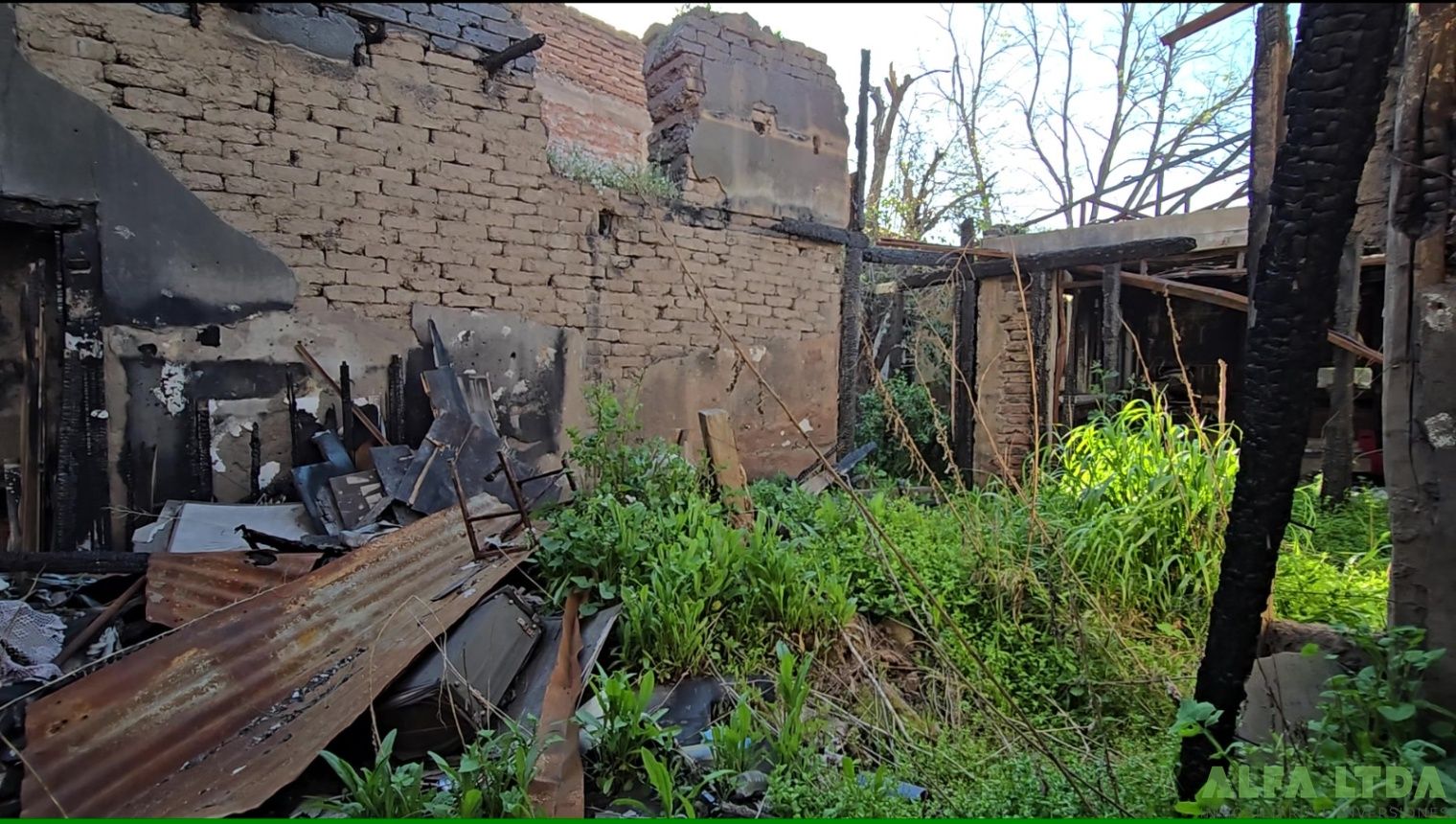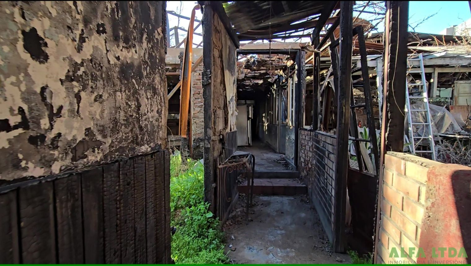 Se trata de una propiedad con 805 m2 de terreno aproximadamente y 335 m2 en construcciones no aprovechables por su estado (la mayoría es de adobe) y está incendiada, la construcción más cercana a la calle no tiene techumbre.